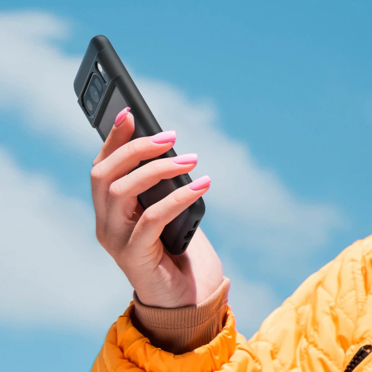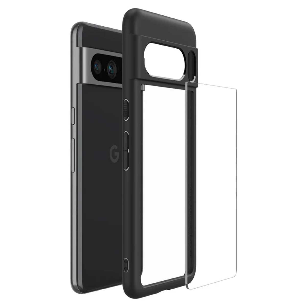 Він виготовлений з прозорого полікарбонату та гнучкого TPU, що забезпечує надійний захист від подряпин і ударів. Завдяки технології Air Cushion на кутах, чохол ефективно захищає телефон від падінь. Матова чорна обробка додає елегантності, а легкий доступ до всіх портів і функцій робить використання зручним. Цей чохол - найкращий вибір для тих, хто шукає стильний і функціональний захисний аксесуар для Google Pixel 8 Pro