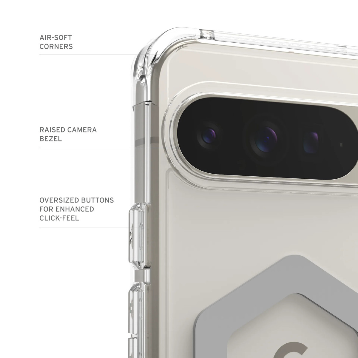 Серія Plyo — по-справжньому витривала, поєднує військовий рівень захисту від падінь із кришталево прозорим покриттям. Завдяки властивостям, що запобігають пожовтінню, чохол зберігає прозорість і привабливий вигляд з часом. Легка конструкція поєднує амортизуючу рамку з TPU та задню панель із полікарбонату (PC), забезпечуючи надійний захист без зайвого об’єму. Фірмова бронь UAG та м’який ударостійкий сердечник надійно захищають ваш телефон від випадкових падінь. Стійкі до подряпин протиковзкі вставки та м’які повітряні кути забезпечують додаткове поглинання ударів. Завдяки потужному вбудованому магніту чохол повністю сумісний із бездротовою зарядкою.
